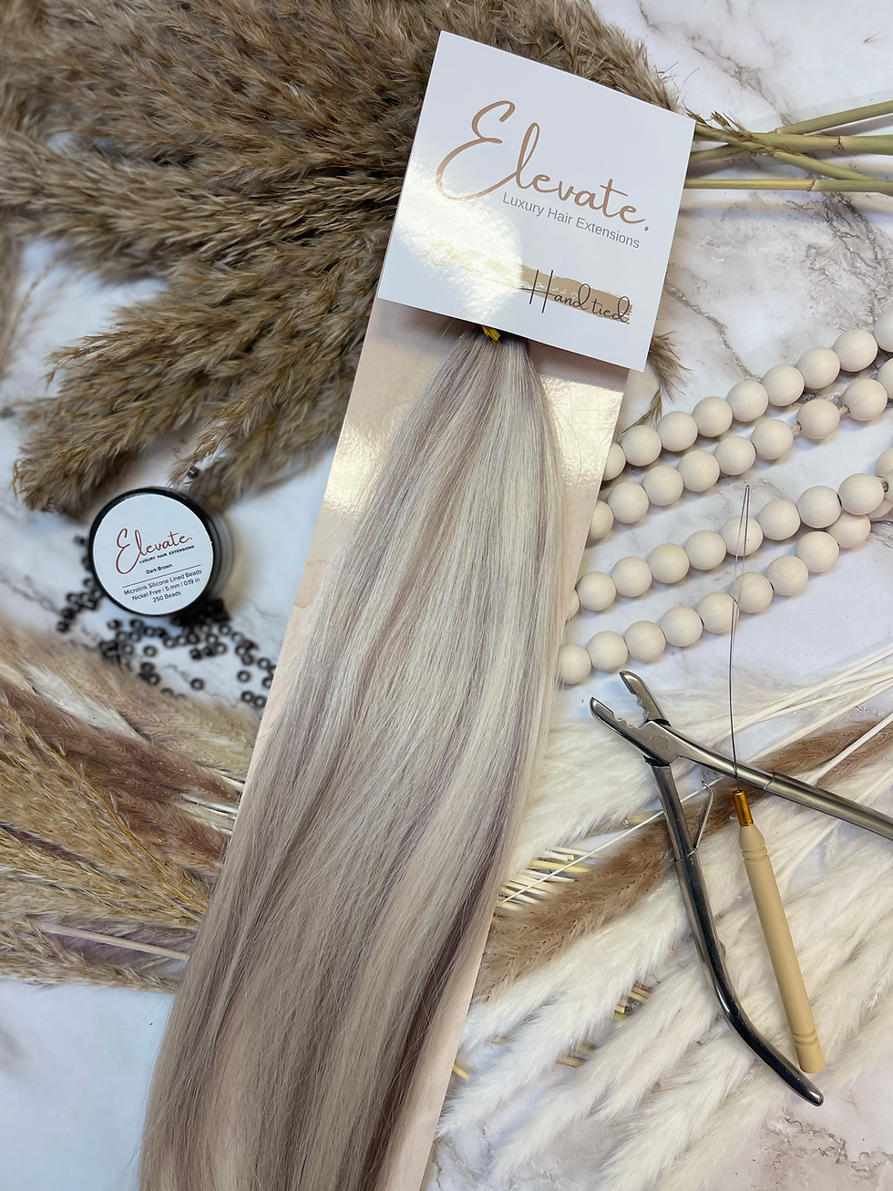 Our professional handtied hair extensions provide one of the best extension experiences available due to their long lifespan and wide range of usage. Customize your hand tied extensions for sew-in method, clip-ins, or natural beaded row (NBR) techniques! All our high-quality Handtied extensions are made with 100% natural Remy cuticle-intact human hair to ensure strength and durability. Our handtied hair extensions come in many trending color options, which includes ombre, balayage, and more shades.